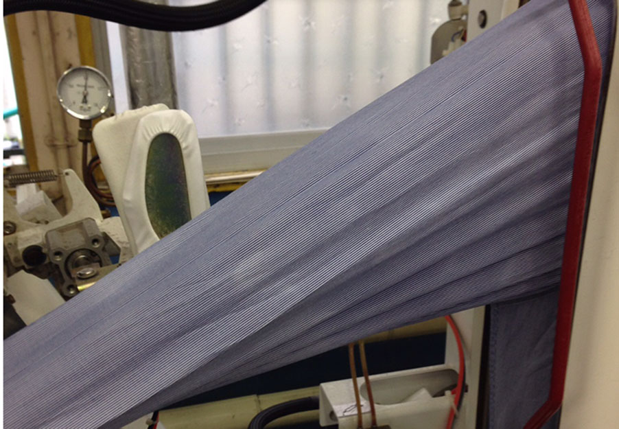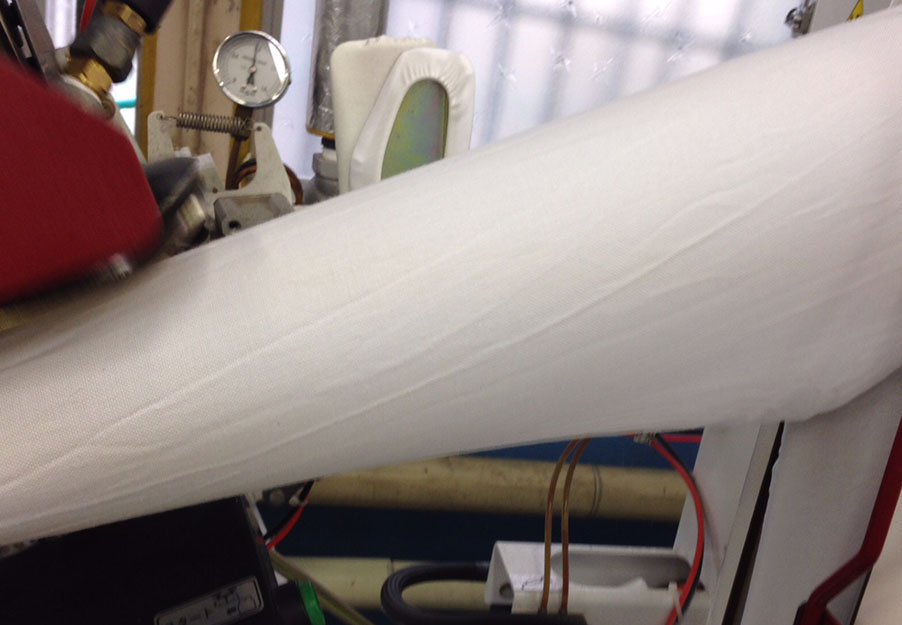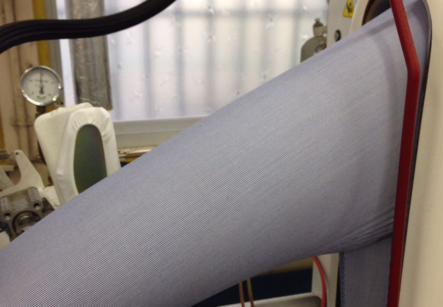しかし、常温でのすすぎが3回以上される場合は、特にクールダウンなど考えなくても温度は下がっています。この時に出来た「結束シワ(結束の位置に注意しています)」はプレス機によって取れています。
