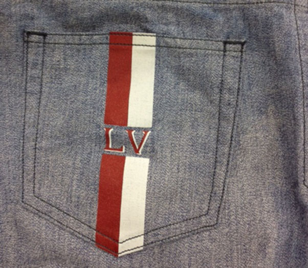 チョット離れてみれば、何処にでもありそうなパンツですが、よく見れば「LV」のロゴがあります。